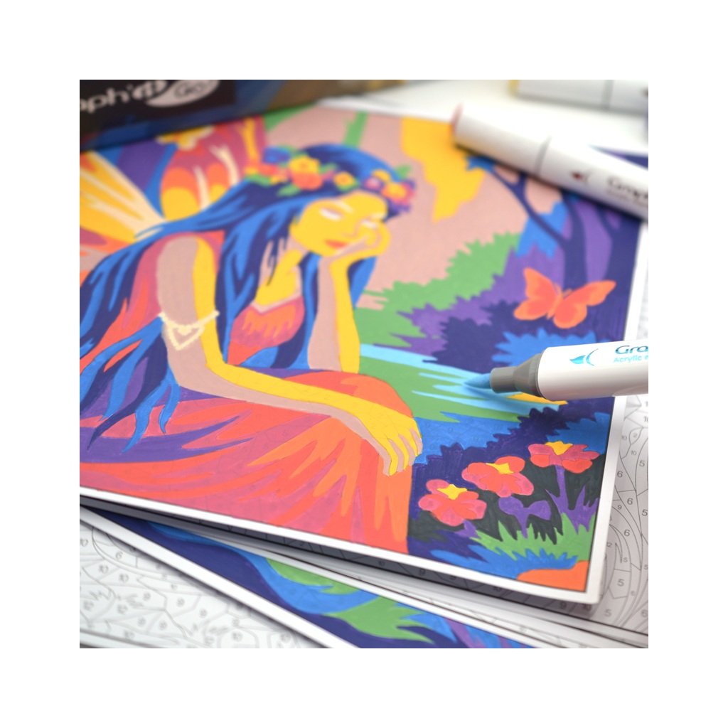 Oboustranné akrylové fixy GRAPH’IT GO! s kvalitními japonskými polyesterovými hroty. Na jedné straně má měkký štětcový hrot a na druhé straně pevný kulatý hrot. Je ideální pro všechny milovníky volnočasových kreseb, tajemného vybarvování nebo kreativních tužeb. Univerzální použití na dřevo, sklo, kámen, kov, papír a další. Jeho pigmentovaný inkoust na vodní bázi je neprůhledný, ale neprosakuje papírem.