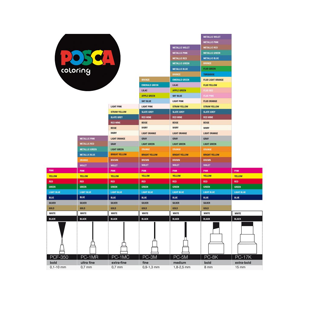 Nepostradatelný akrylový popisovač UNI POSCA je oblíbený jak profesionály, tak začátečníky. Obsahuje jedinečný akrylový inkoust, jehož složení se od svého vytvoření nezměnilo, je mimořádně bohatý na pigmenty a je extrémně odolný vůči atmosférickým podmínkám a plynutí času. Jeho matné barvy mají velkou sytost - umělci je milují pro svá díla a fandové jsou ohromeni „magickým“ efektem Posca. Obsahuje jedinečný ventilový mechanismus, který zaručuje perfektní utěsnění a šetří barvu v průběhu času. Stejný mechanismus se používá k naplnění popisovačů Posca pro použití a k opětovnému nasycení hrotu tak často, jak je to nutné během tvoření. Barvy jsou vrstvitelné, mísitelné, vodou rozpustné, odolné vůči povětrnostním vlivům a nabízejí neomezené kreativní možnosti.