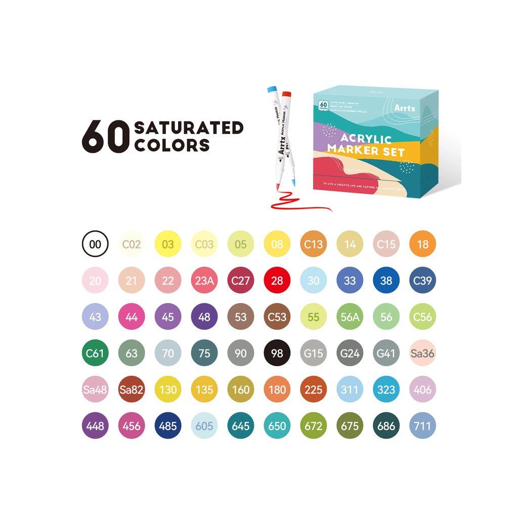 Akrylové fixy ARRTX štětcové, 60 ks přírodní