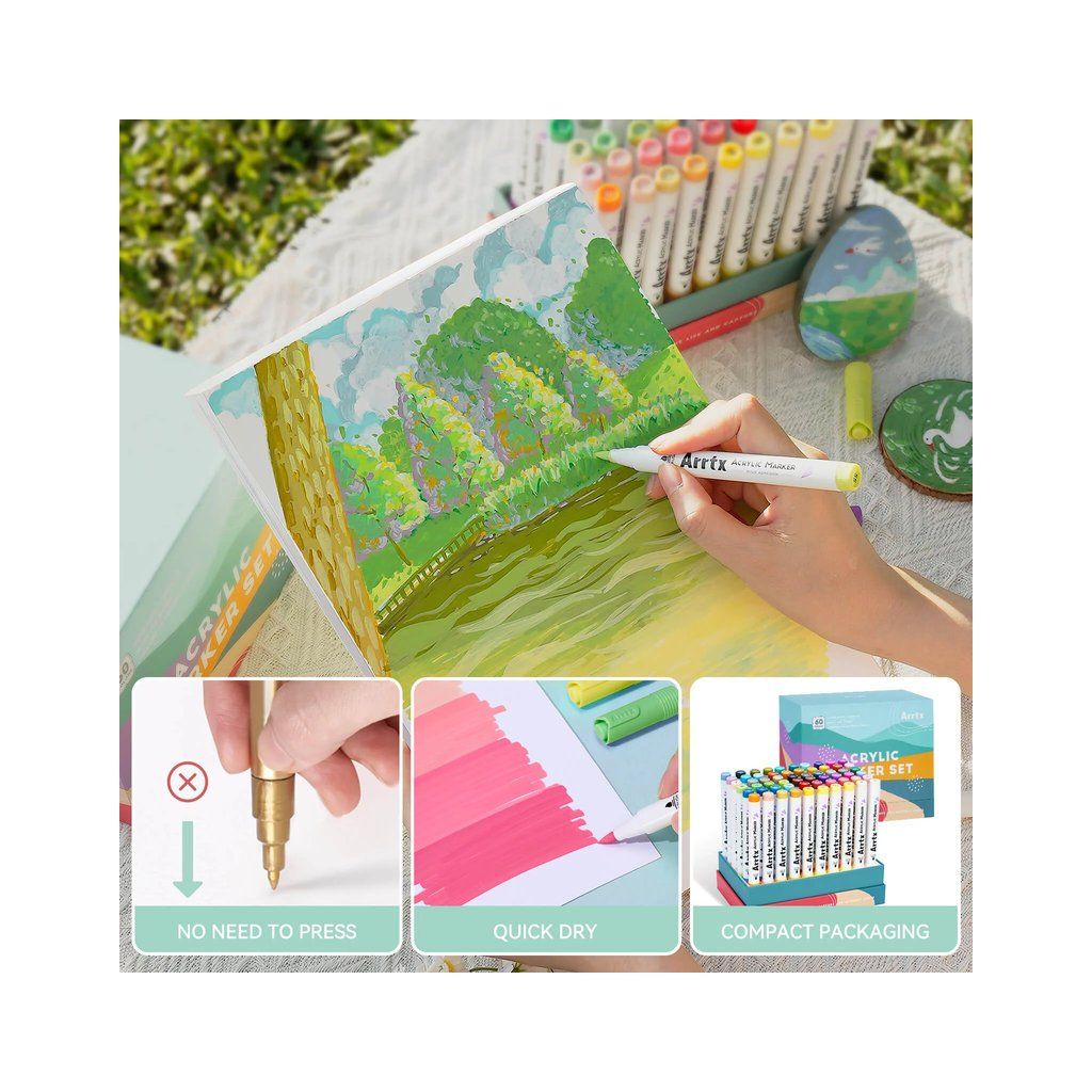 Akrylové popisovače ARRTX v 60 zářivých barevných odstínech. Fix má flexibilní štětcový hrot vhodný pro detaily i větší plochy nebo pro kaligrafii. Akrylové popisovače jsou baleny v designové krabičce, aby vše zůstalo čisté a dobře organizované. Ideální dárek pro děti, studenty, umělce i pro dospělé.