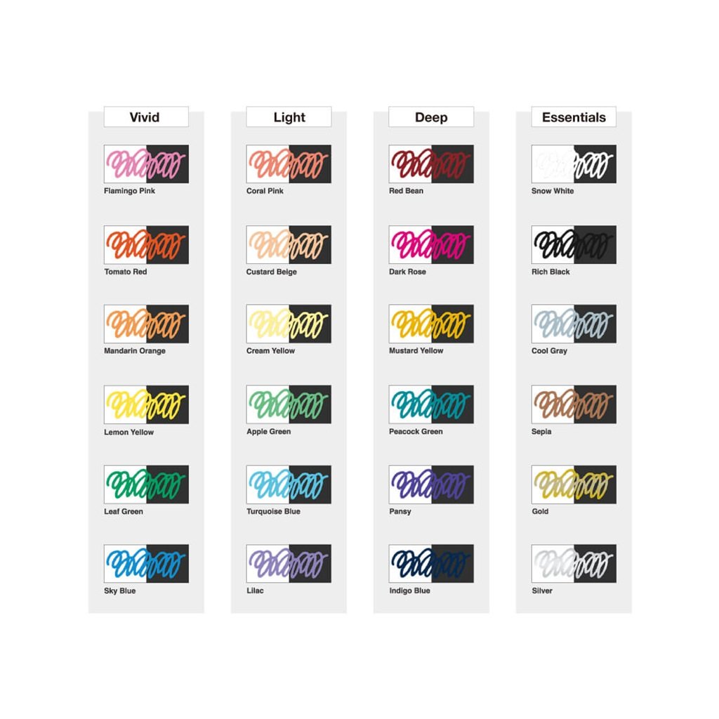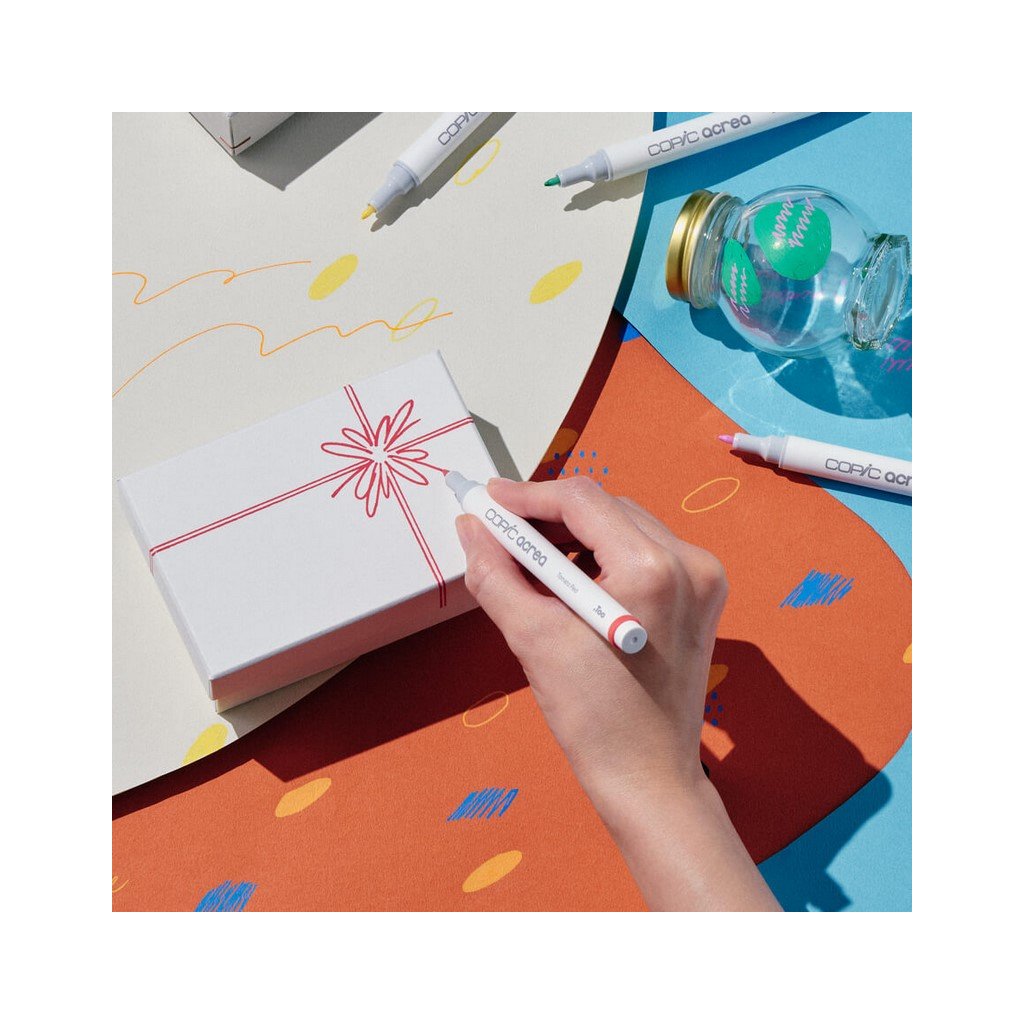 Akrylové fixy COPIC Acrea nabízí výběr pigmentových popisovačů s neprůhlednými odstíny od sněhově bílé přes pastelové barvy až po lesklé metalické odstíny. Všestrannost otevírá nekonečné kreativní možnosti, protože můžete pracovat na různých materiálech, jako je papír, sklo, kámen, dřevo, železo, plasty a tkaniny. Netoxický inkoust bez zápachu je po zaschnutí voděodolný a světlostálý. Perfektně fungují také na uměleckých dílech vytvořených fixami na alkoholové bázi. Elegantní matný design umožňuje snadné uchopení, zatímco tenký hrot je optimalizován pro složité detaily a poskytuje plynulý tok inkoustu pro bezproblémové kreslení nebo psaní.