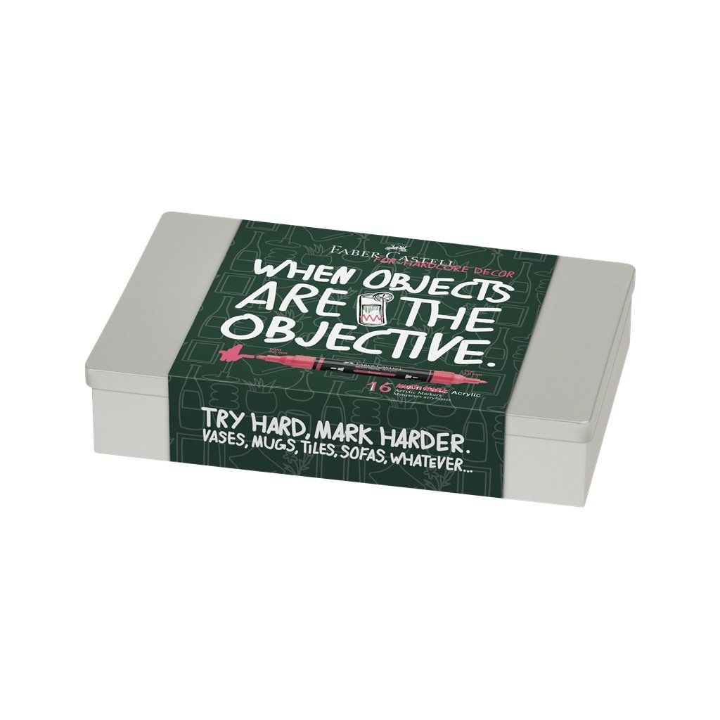 Akrylové fixy FABER-CASTELL Multimark, 10 ks Home v kovové krabičce