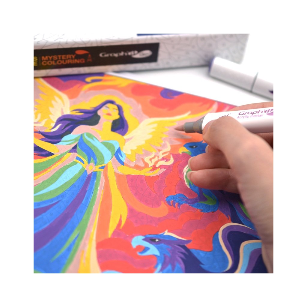 Akrylové fixy GRAPH'IT oboustranné Brush & Fine, 12 ks Fantasy World + 8 omalovánek