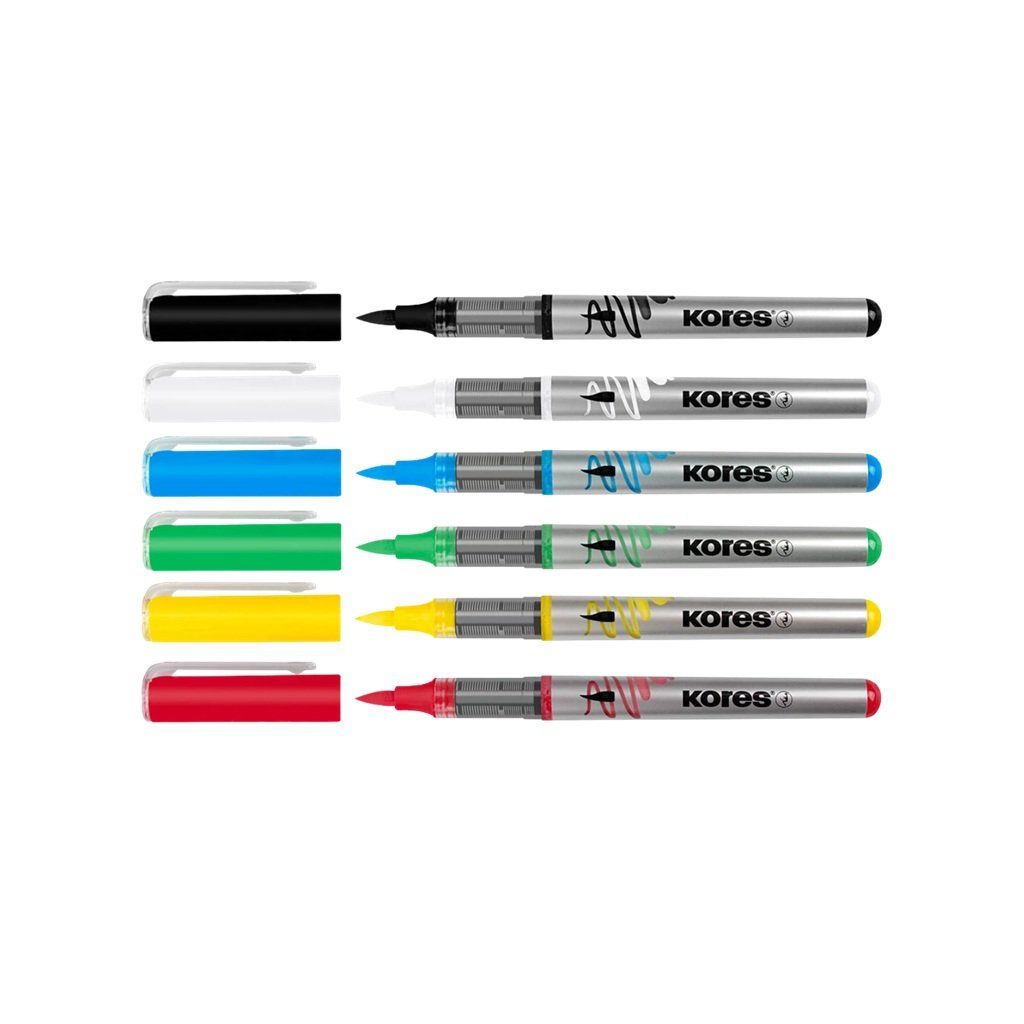 Vysoce kvalitní kreativní popisovače KORES s tekutým akrylovým inkoustem s vysokým obsahem pigmentu, který zajišťuje syté barvy a vysokou kryvost i na tmavých površích. Flexibilní štětcový hrot umožňuje snadno měnit šířku tahu – od jemných detailů až po výrazné tahy. Popisovače mají okamžitý tok inkoustu bez pumpování, již žádné kaňky ani vyteklý inkoust, připravené k použití ihned. Skvěle se hodí pro malování, dekorování, DIY projekty i kreativní práci na různých materiálech.