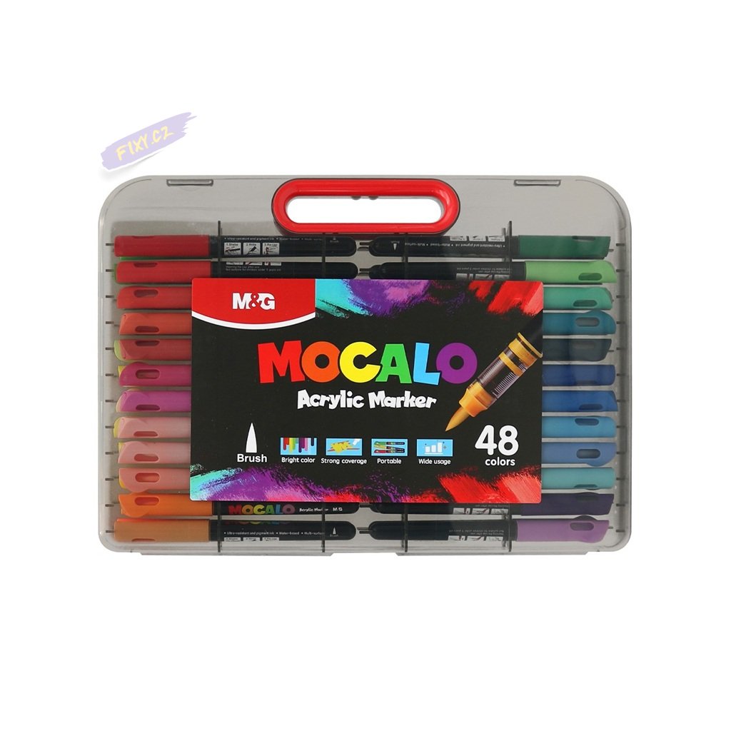 Akrylové fixy M&G Mocalo štětcové, 48ks v plastovém kufříku