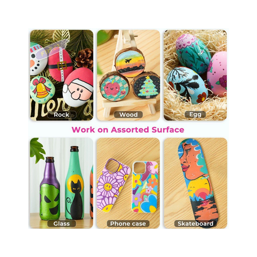 Sada akrylových popisovačů OHUHU se dvěma hroty v praktickém penále. Můžete kreslit na různé povrchy, od kamínků, dřeva, látky, keramiky, hrnků, sklenic, plastu, papíru, vajec, plátna a mnoho dalších materiálů. Každý fix má dva hroty: 0,7-2 mm tenký hrot a 1,7-3 mm kulatý hrot. S voděodolným inkoustem můžete vytvářet umělecká mistrovská díla, která nikdy nevyblednou. Ideální volba pro dlouhodobější umělecké projekty jako graffiti, značení, malování a barvení. Díky zářivému a koncentrovanému inkoustu na vodní bázi jsou akrylové fixy Ohuhu netoxické, bez zápachu a kreslí dokonale hladce, což vám umožní snadno vrstvit s velkým krytím. Velmi vhodné pro začínající začátečníky nebo ostřílené umělce.