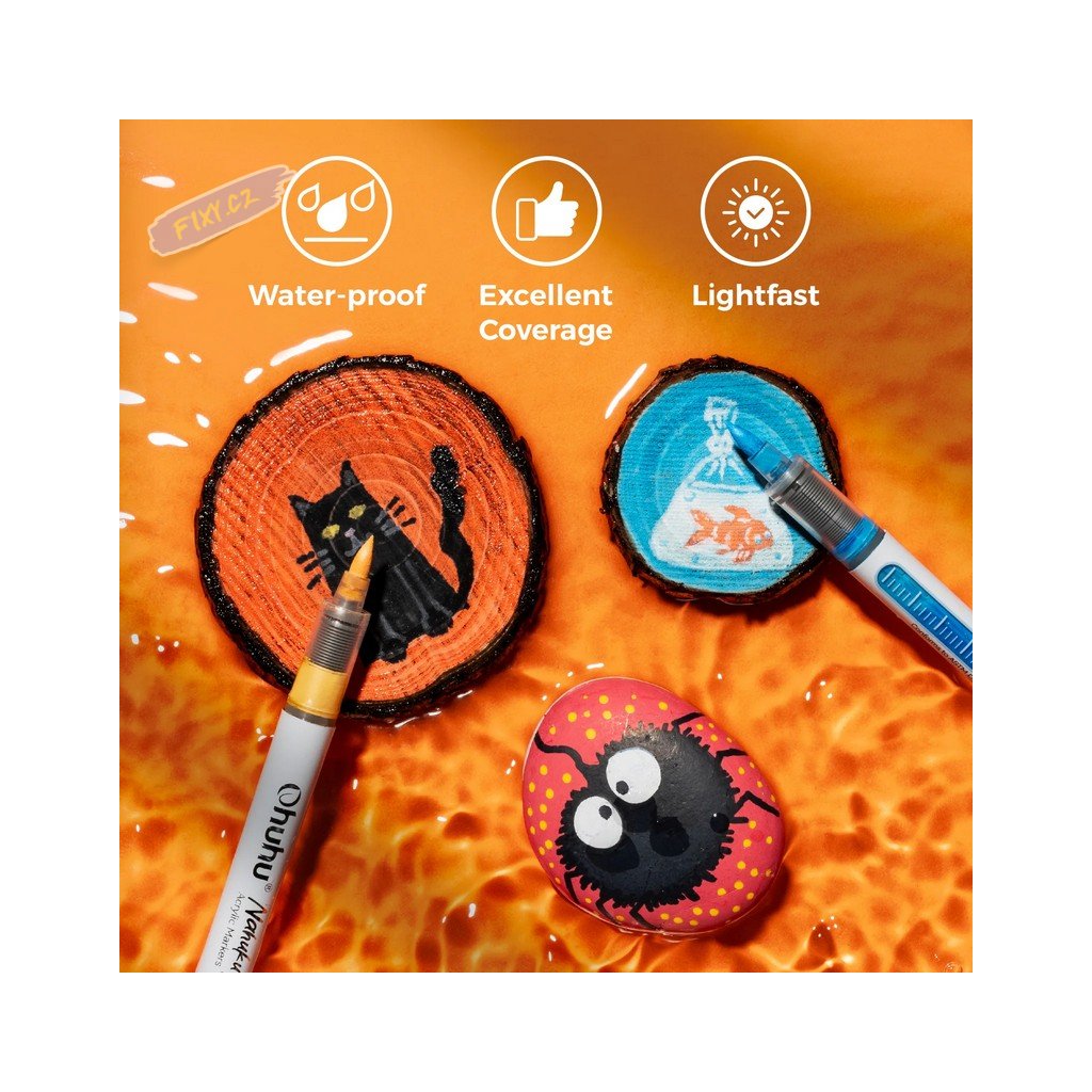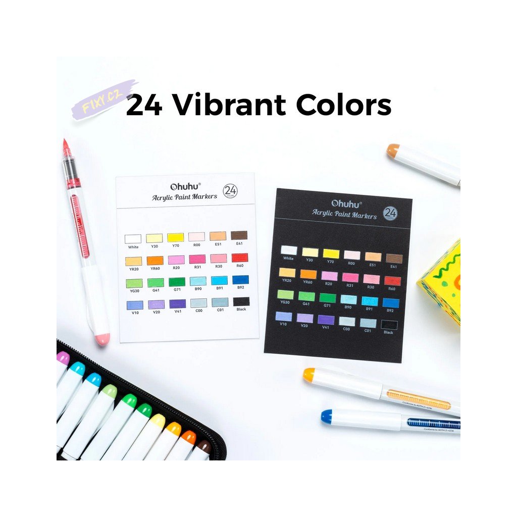 Akrylové fixy OHUHU obsahují 24 zářivých barev, které krásně vyniknou na černém i bílém papíře, ideální pro vytváření úchvatných uměleckých děl. Díky vodě a slunci odolnému inkoustu zůstane vaše kresba živá a nadčasová. Vhodné pro dlouhodobé projekty, jako je graffiti, značení, malování a barvení.