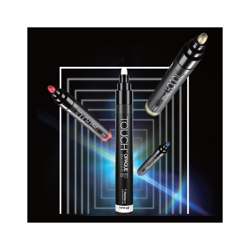 Inkoustové pigmentové popisovače od značky TOUCH na vodní bázi jsou vynikající kreativní nástroj pro velmi odolné a živé vybarvení detailů. 100% čistý pigmentový inkoust je mimořádně bohatý na pigmenty a jeho jedinečné složení inkoustu na vodní bázi zaručuje nesrovnatelně zářivé krycí barvy se silnou světlostálostí, které vyniknou na světlých i tmavých površích a nabízejí neomezené možnosti. Všestranný TOUCH Opaque Marker lze použít prakticky na všechny povrchy jako je papír, dřevo, plast, kov, sklo, guma, polystyren, látka, kůže, keramika a mnoho dalších. Ať už je povrch světlý nebo tmavý, drsný nebo hladký, i tak je velmi odolný vůči vodě a vyblednutí pro vnitřní i venkovní použití. Na většině hladkých, neporézních materiálech jako je sklo, PVC a kovové povrchy je snadno snímatelný.