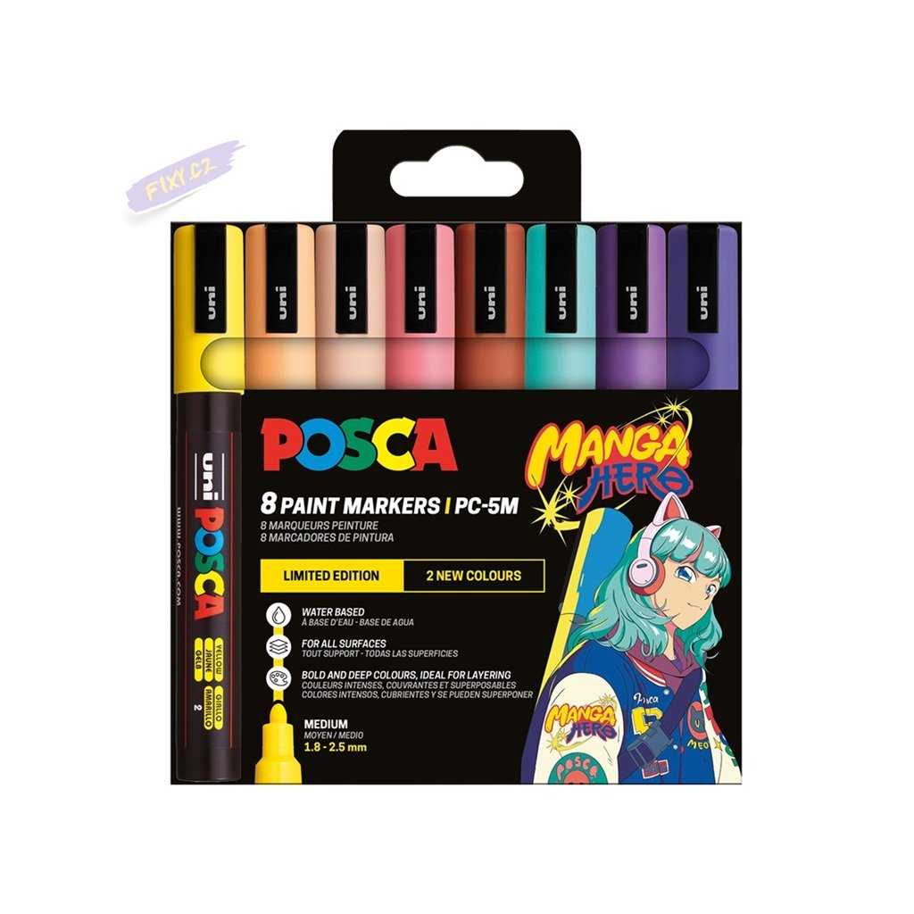 Akrylové fixy UNI POSCA 5M, 8ks Manga Hero