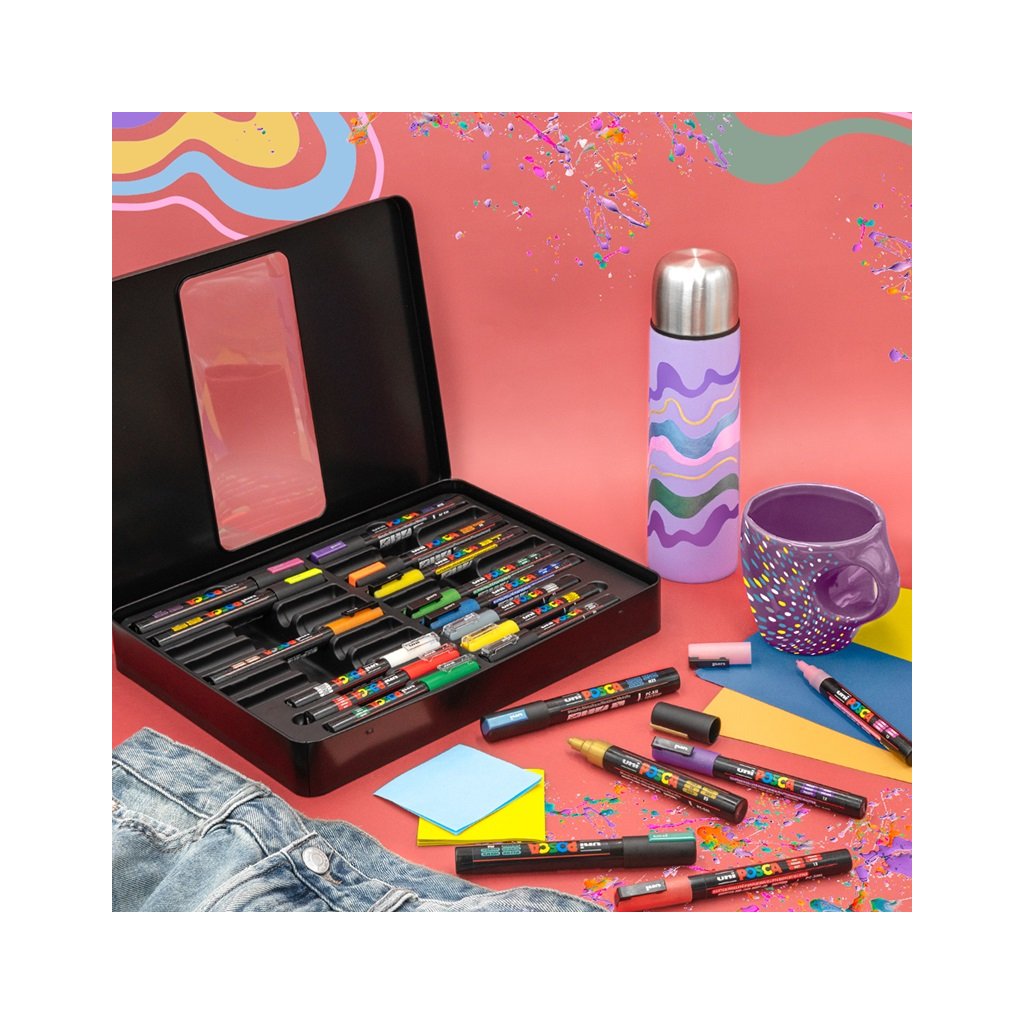 Nepostradatelný akrylový popisovač UNI POSCA je oblíbený jak profesionály, tak začátečníky. Obsahuje jedinečný akrylový inkoust, jehož složení se od svého vytvoření nezměnilo, je mimořádně bohatý na pigmenty a je extrémně odolný vůči atmosférickým podmínkám a plynutí času. Jeho matné barvy mají velkou sytost - umělci je milují pro svá díla a fandové jsou ohromeni „magickým“ efektem Posca. Obsahuje jedinečný ventilový mechanismus, který zaručuje perfektní utěsnění a šetří barvu v průběhu času. Stejný mechanismus se používá k naplnění popisovačů Posca pro použití a k opětovnému nasycení hrotu tak často, jak je to nutné během tvoření. Barvy jsou vrstvitelné, mísitelné, vodou rozpustné, odolné vůči povětrnostním vlivům a nabízejí neomezené kreativní možnosti.