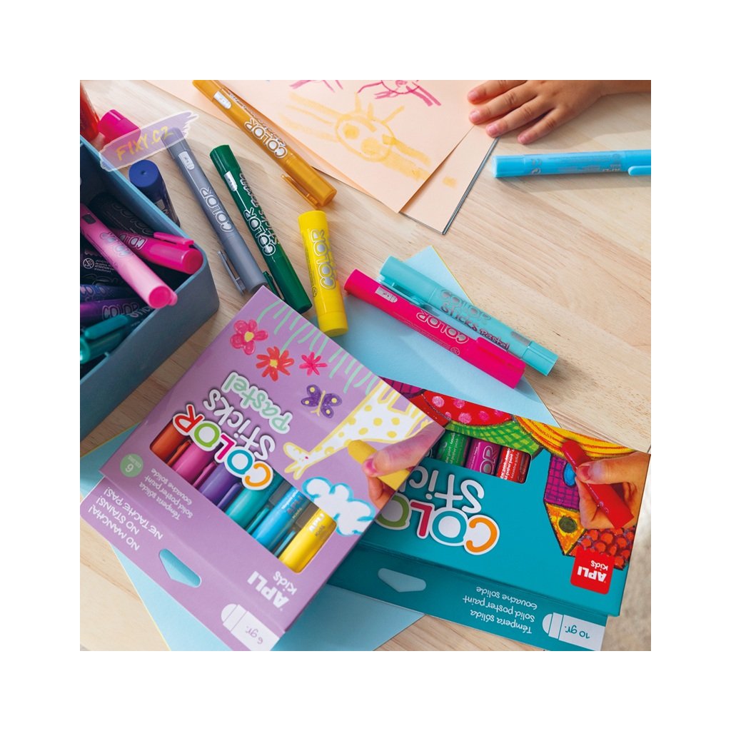 Vysouvací barvy v tyčince. Ideální ke kreslení a malování na papír a karton. Po zaschnutí vytvářejí saténový efekt. Podle vyvíjení tlaku můžete dosáhnout různé povrchové úpravy: lehký tlak - pastelový efekt, silný tlak - temperový efekt.