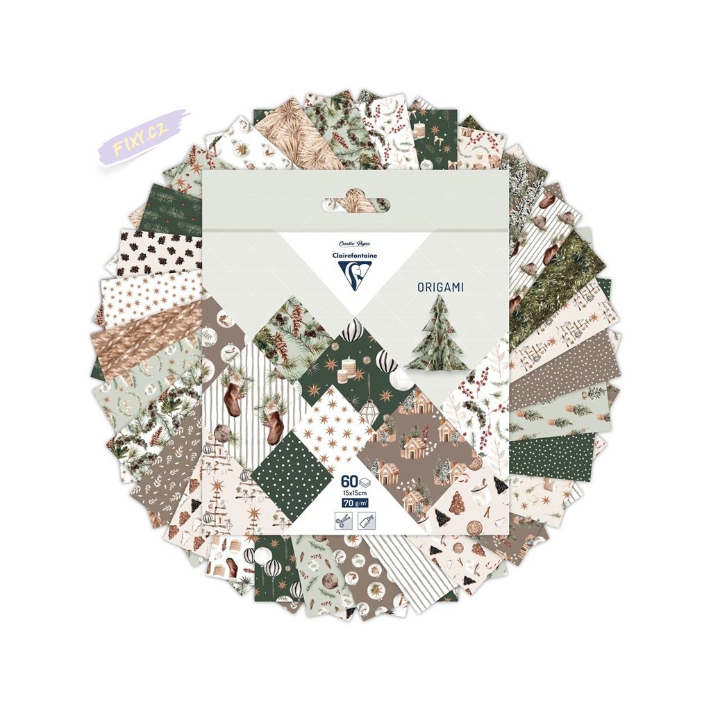 Barevné papíry CLAIREFONTAINE Origami Vánoce, 15x15cm, 70g, 60 listů