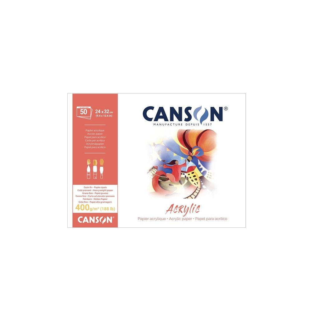 CANSON Acrylic je silný za studena lisovaný papír s vysokou gramáží (400g/m2), pevný a savý. Je ideální pro práci s akrylovými barvami. Papír je bez acidů, má vynikající životnost a je přirozeně bílý.