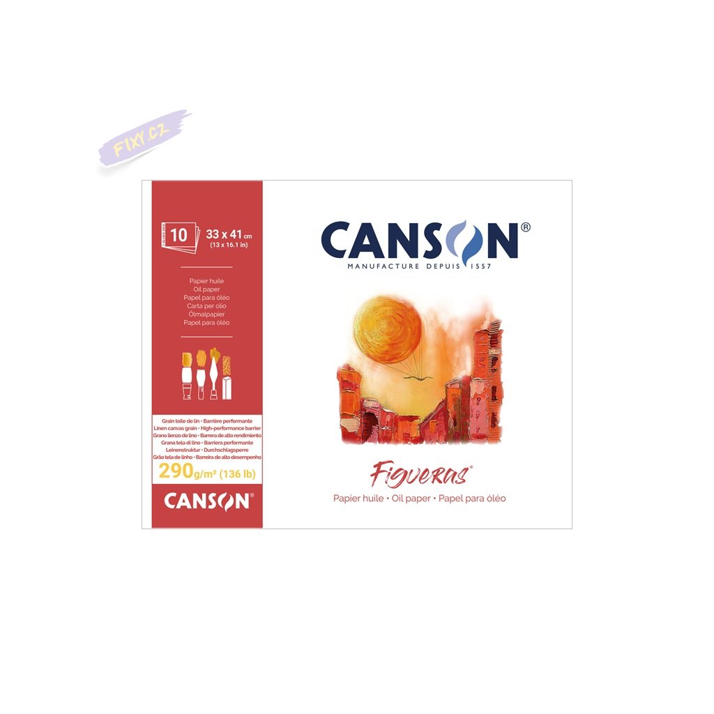 CANSON Figueras je odolný papír vysoké kvality speciálně určený pro olejomalbu. Výtečně absorbuje olej, pojiva a vodu, zároveň je díky povrchovému nátěru zajištěna vynikající odolnost. Je bez povlaku s přírodní texturou podobnou plátnu. Tento papír bez acidů nabízí vynikající životnost a může být uchováván po dlouhou dobu. Je lehký a připraven k použití, ideální na cesty, na doma, ve volné přírodě nebo ve vašem studiu. Je také vhodný pro mastný pastel a akryl, se značnými pastózními účinky.