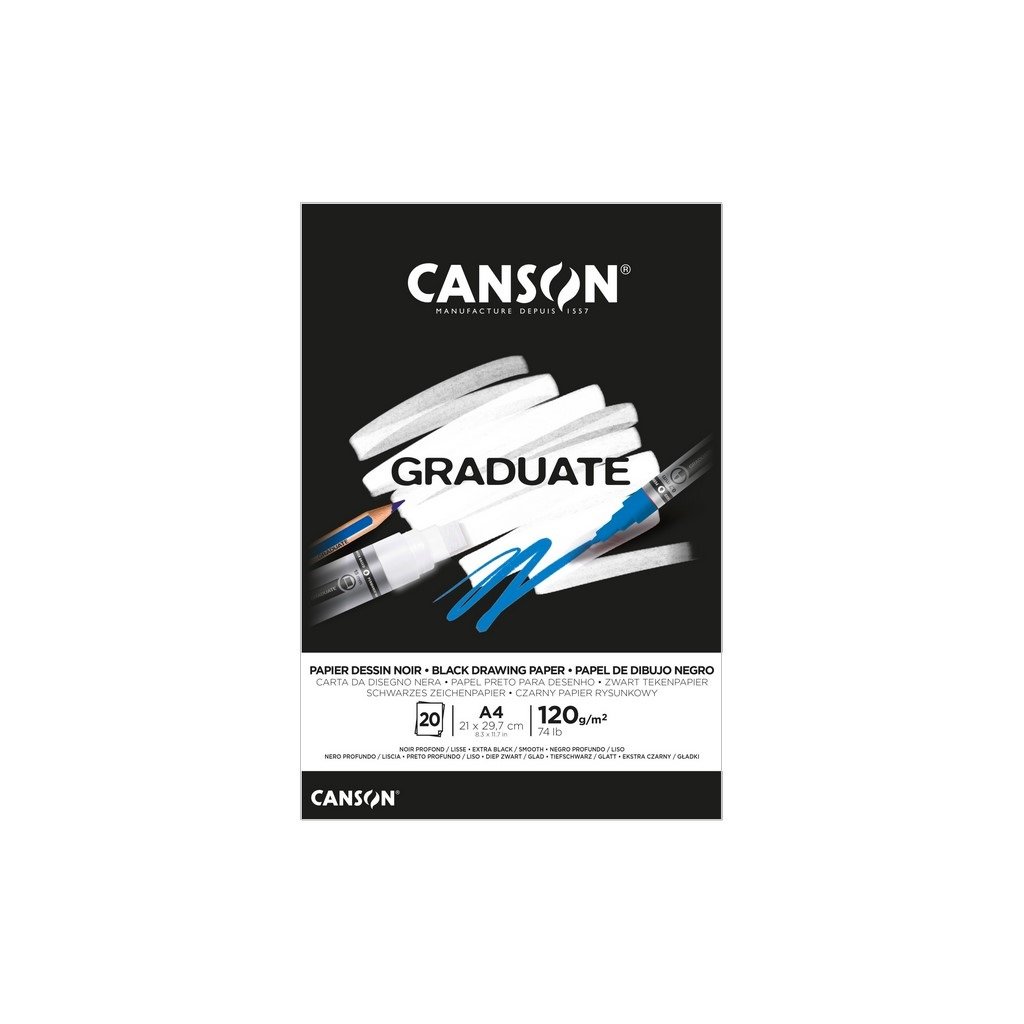 Blok CANSON Graduate Drawing Black A4, 20 listů 120 g