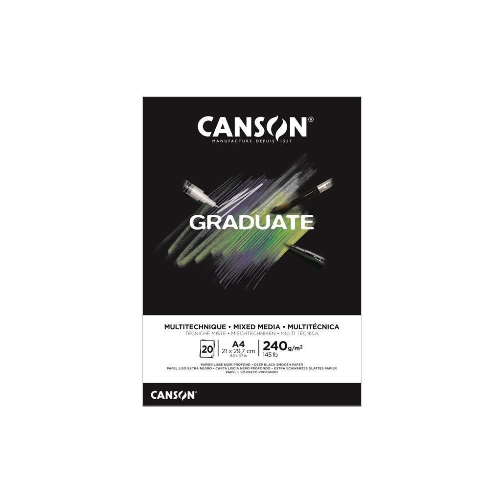 Blok CANSON Graduate Mixed Media A4, 20 listů Black 240 g