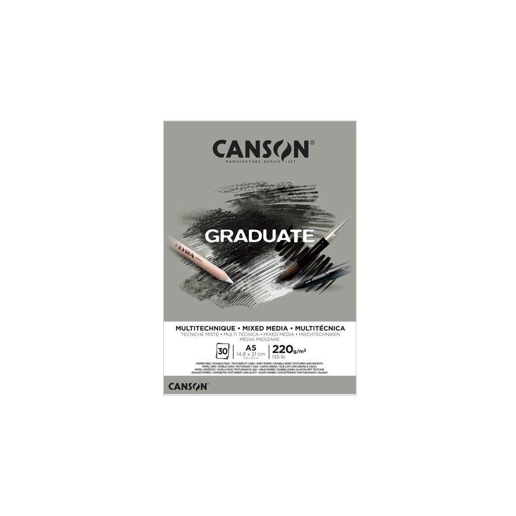 Blok CANSON Graduate Mixed Media A5, 30 listů Grey 220 g