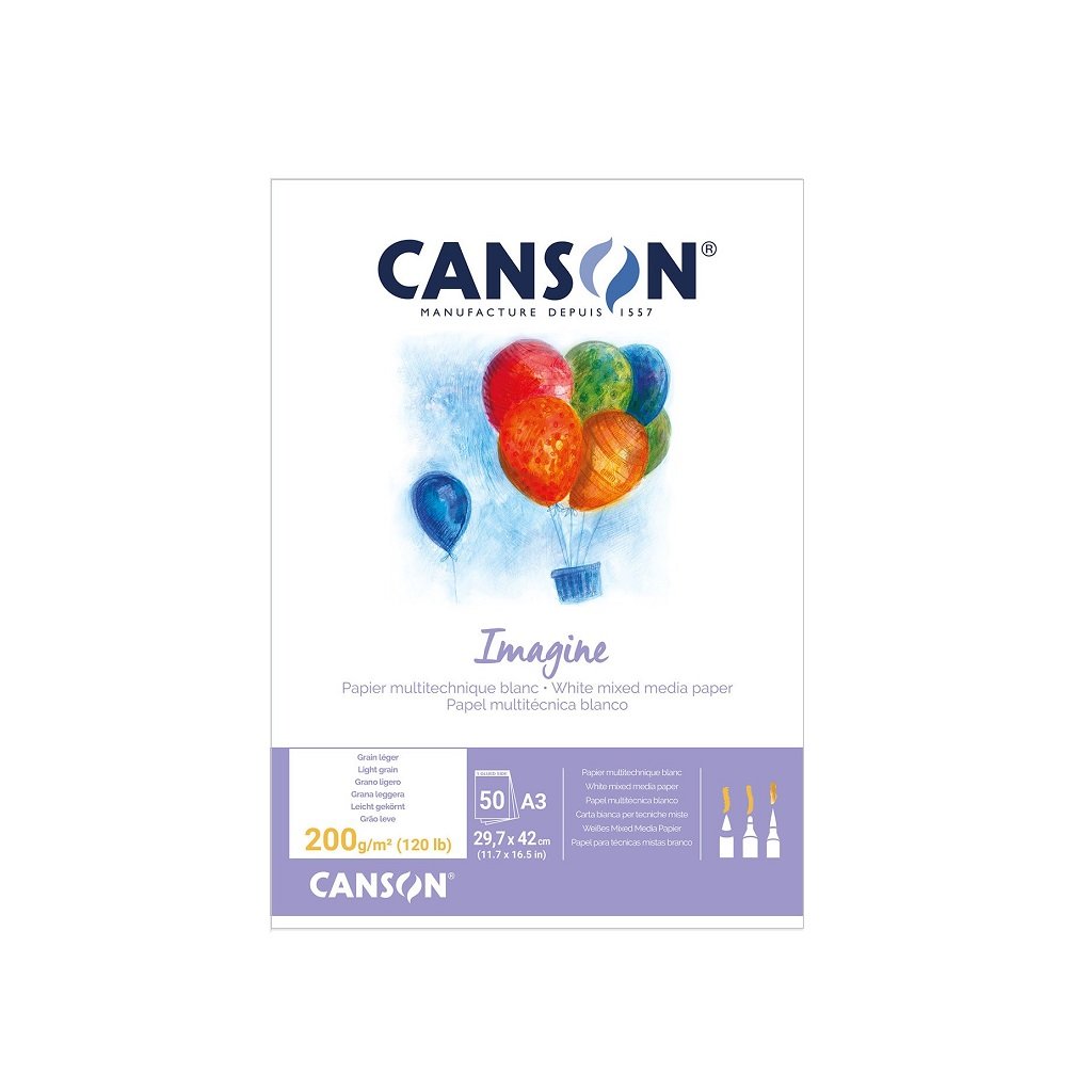 Papír CANSON Imagine je pozoruhodný svou hedvábnou texturou, která zdůrazňuje zachování přírodního hlediska. Výjimečný pocit na dotek. Jeho textura, absorpční kapacita a gramáž 200g/m2 dělají z Imagine ideální papír pro suché i mokré techniky, jako je kvaš či akvarel. Jeho čistě bílá barva poskytuje vynikající kontrast a harmonické barvy.