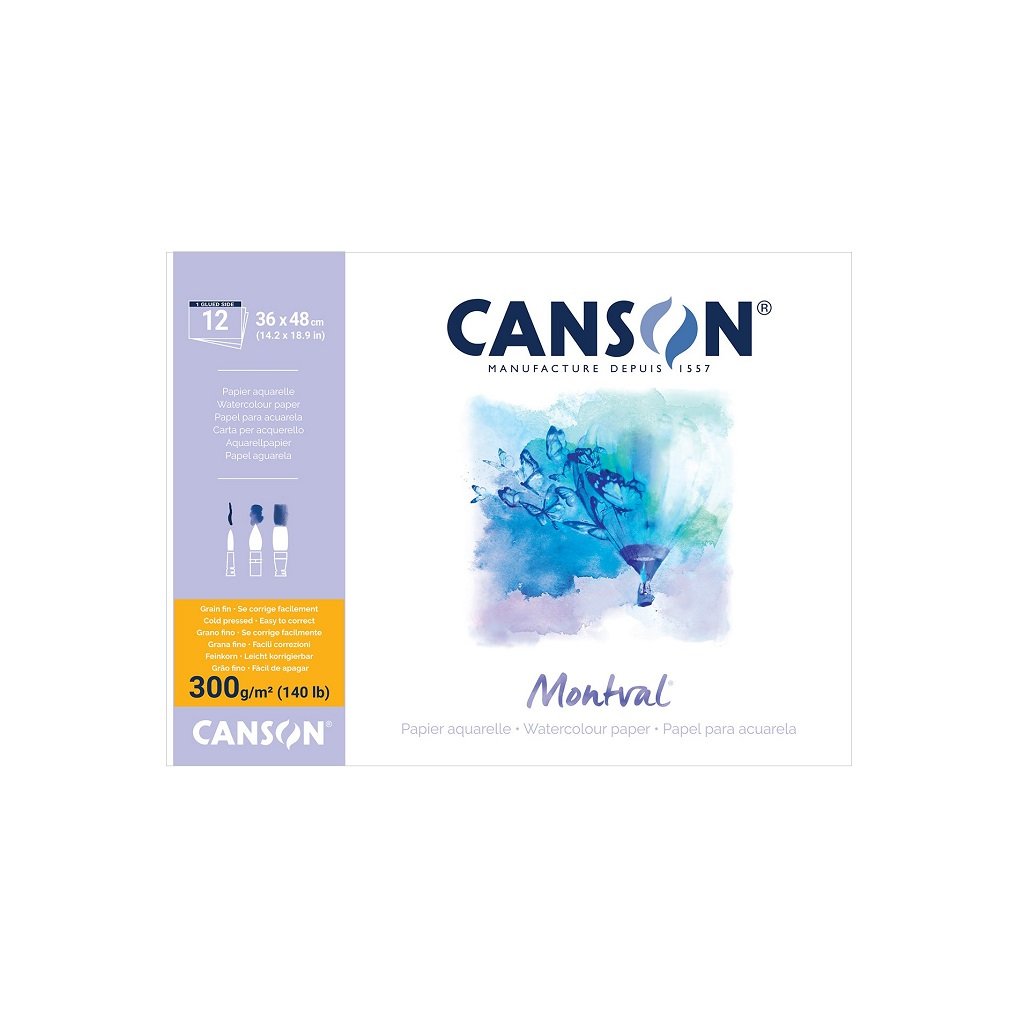 Papír CANSON Montval byl navržen malířem Gaspardem Maillolem na počátku 20. století a na jeho žádost vyroben firmou Canson. Od té doby narůstal papír na kvalitě. Bez acidů, s dlouhou životností, ošetřen proti plísním, vyroben ze 100% celulózy, je tento akvarelový papír vrcholné kvality ideální pro studenty i profesionály. Jeho použití je velmi snadné a dobře se na něm provádějí opravy. S gramáží 300g/m2 je vhodný ke všem mokrým technikám, např. akvarelové, temperové a akrylové barvy.