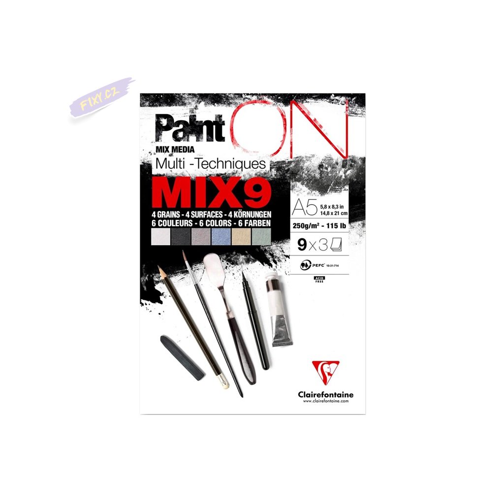 Blok CLAIREFONTAINE Paint'On Mix9, A5, 250g, 27 listů