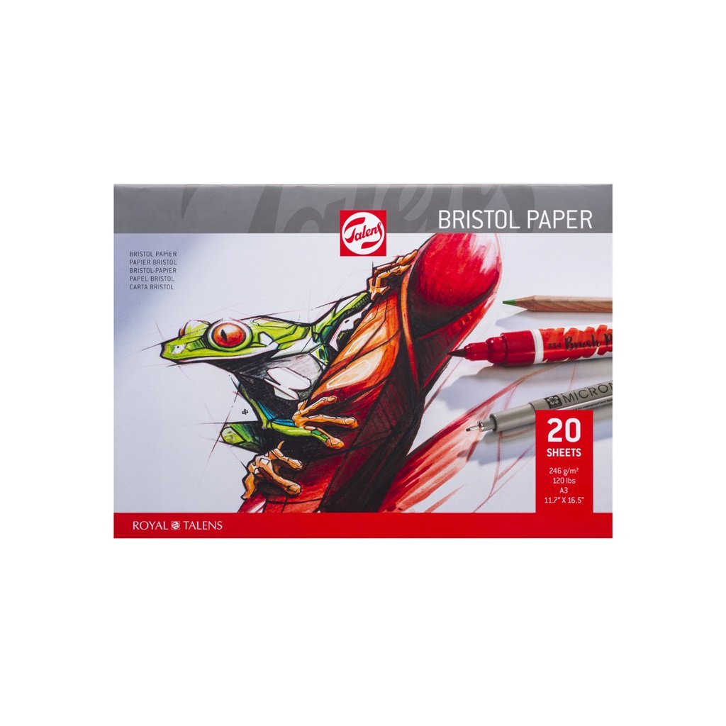 TALENS Bristol Paper je hladký, zářivě bílý, vysoce kvalitní papír s gramáží 246g/m². Tento papír optimalizuje zobrazení barev díky tvrdšímu klížení povrchu, takže se ideálně hodí pro jemné linky, pastelky, tužky, akvarelové fixy, štětce a inkousty. Tvrdší povrchové klížení poskytuje větší kontrolu a menší rozpíjení než jiné papíry. Papír byl speciálně vyvinut pro architekty, designéry a grafiky, ale je velmi vhodný i pro začátečníky. Papír Bristol je navíc bez kyselin, pH neutrální a pufrovaný, aby byla zaručena optimální trvanlivost papíru.