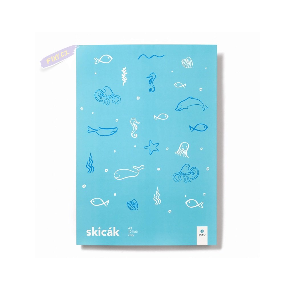 Skicák s motivem mořského světa se bude líbit klukům i holkám. Tvrdší papír je vhodný pro kresbu a malbu pastelkami, fixami i vodovkami.