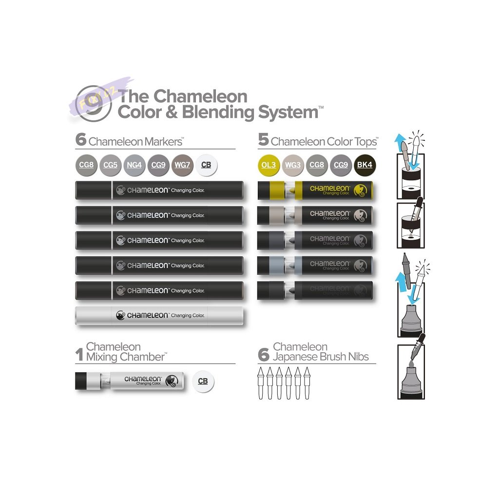 CHAMELEON Pen tónovací popisovač, 6+6ks šedé tóny