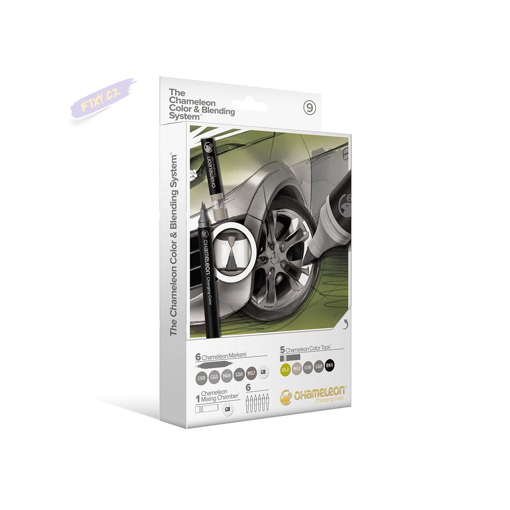 Sety Chameleon Color & Blending System nabízejí jedinečnou kombinaci barevných nástavců Chameleon Color Tops, tónovacích fixů Chameleon Pen a bezbarvého blenderu, díky kterému vytvoříte více jak 50 odstínů a barevných tónů. Balení obsahuje 1x bezbarvý zesvětlovací fix Chameleon Blender, 5x barevné nástavce Chameleon Color Tops, 5x tónovací fix Chameleon Pen, 1x nádobka na míchání barev a 6x náhradní štětcový hrot.
