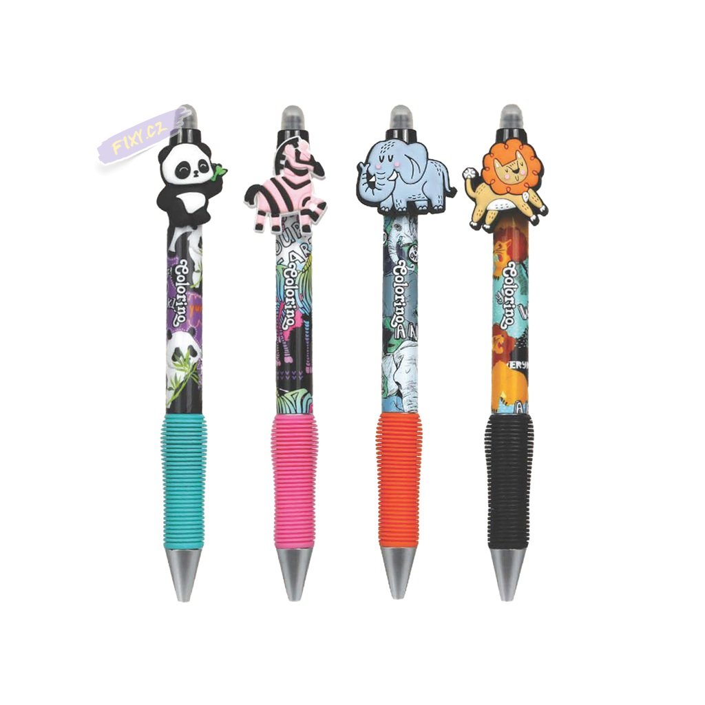 Kolekce 4 gumovatelných per s barevným tělem a roztomilými motivy. Příjemný pogumovaný grip zajistí pohodlný úchop každému školákovi.