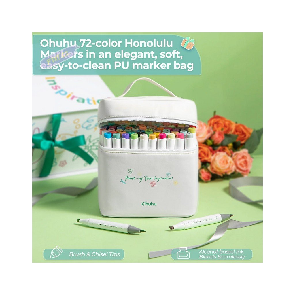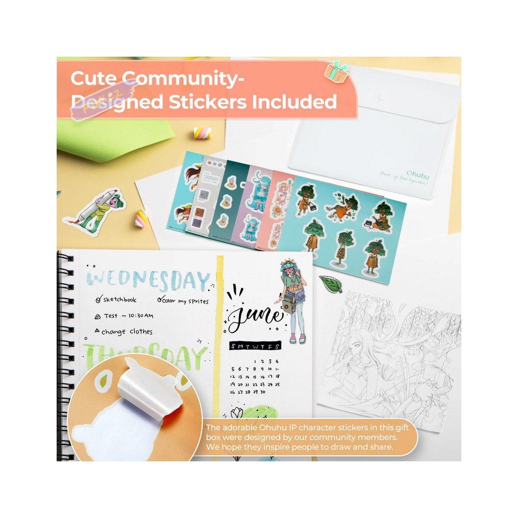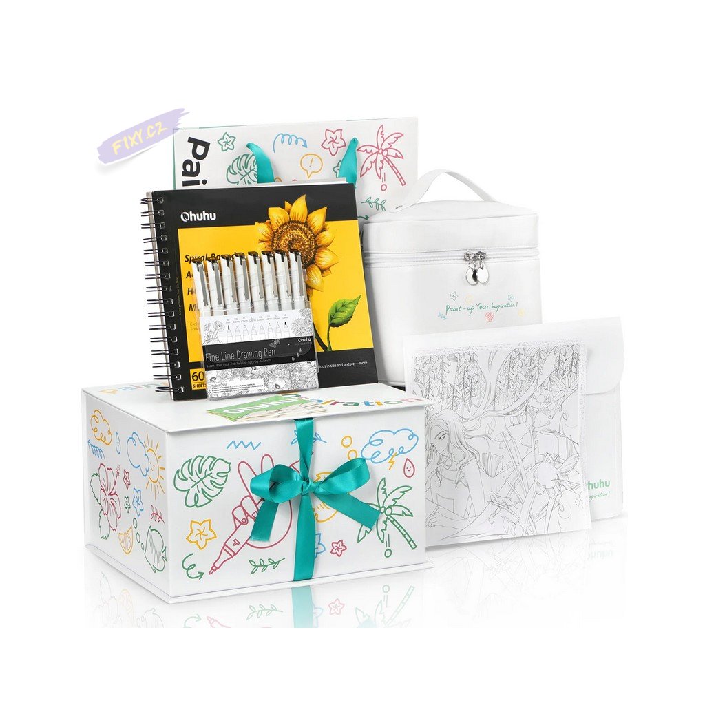 Dárková sada OHUHU je perfektní dárek pro každého, kdo miluje ilustraci, skicování, vybarvování, malování a kreslení. Sada obsahuje 72 alkoholových fix OHUHU Brush & Chisel, skicář, sadu 8 linerů pro tenké linky a 16 omalovánek, které poskytují všechny základní potřeby pro nadšence do alkoholových fixů. Součástí jsou také roztomilé samolepky. Bílé pouzdro fix je nyní vylepšeno o elegantní, měkký a snadno čistitelný PU materiál.