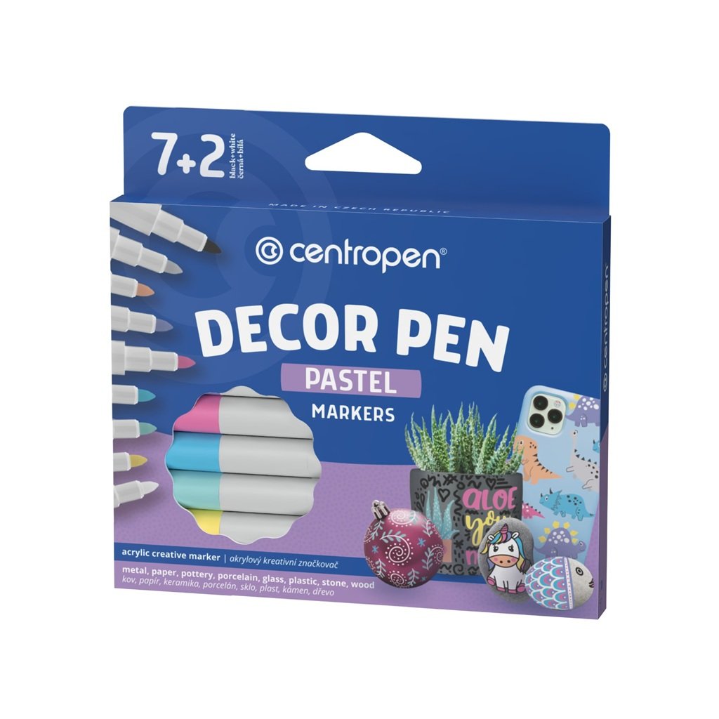Akrylové fixy CENTROPEN 2738/9 Decor Pen, 9 ks Pastel