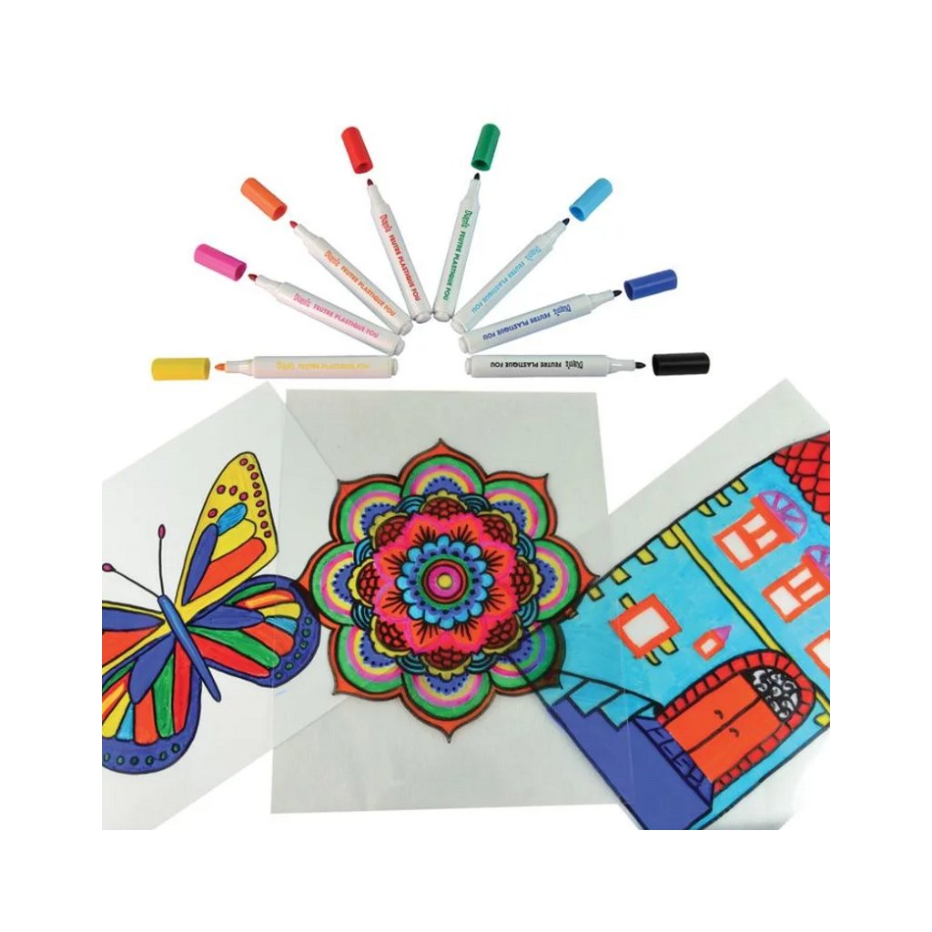 Průsvitné fixy s permanentním inkoustem a jasnými barvami. Navrženo pro kreslení a barvení na hladkém povrchu.