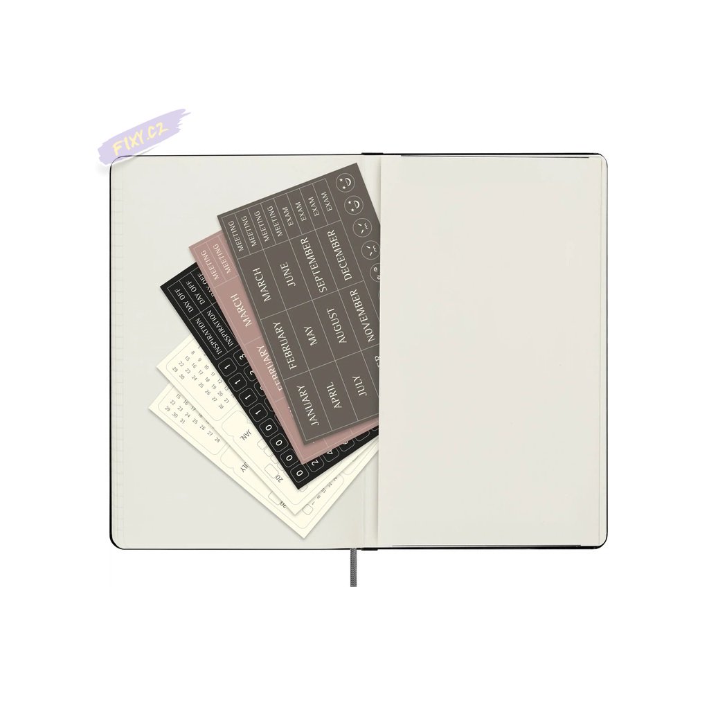- měsíční nálepky mini kalendáře, které je třeba vyplnit a použít pro měsíční děliče