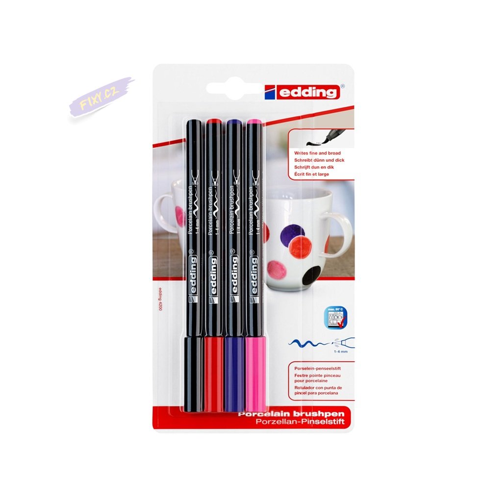Štětcový fix EDDING 4200 na porcelán, 4ks teplé tóny