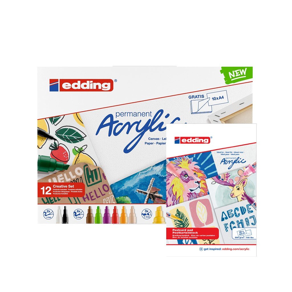 Akrylové fixy EDDING, 12 ks Creative + DÁREK blok EDDING Acrylic A6