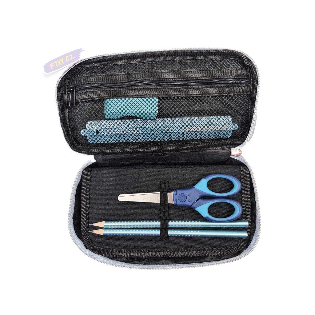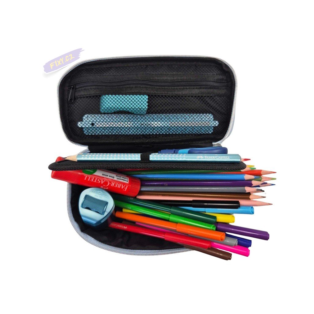 Školní sada FABER-CASTELL, ve které naleznete kompletní výbavu do školy v praktickém penále na zip. Sada obsahuje 12ks fix, 12ks pastelek, 2 tužky tvrdosti B, gumu, ořezávátko se dvěma otvory, pravítko 15cm, nůžky, lepidlo v tyčince a penál.