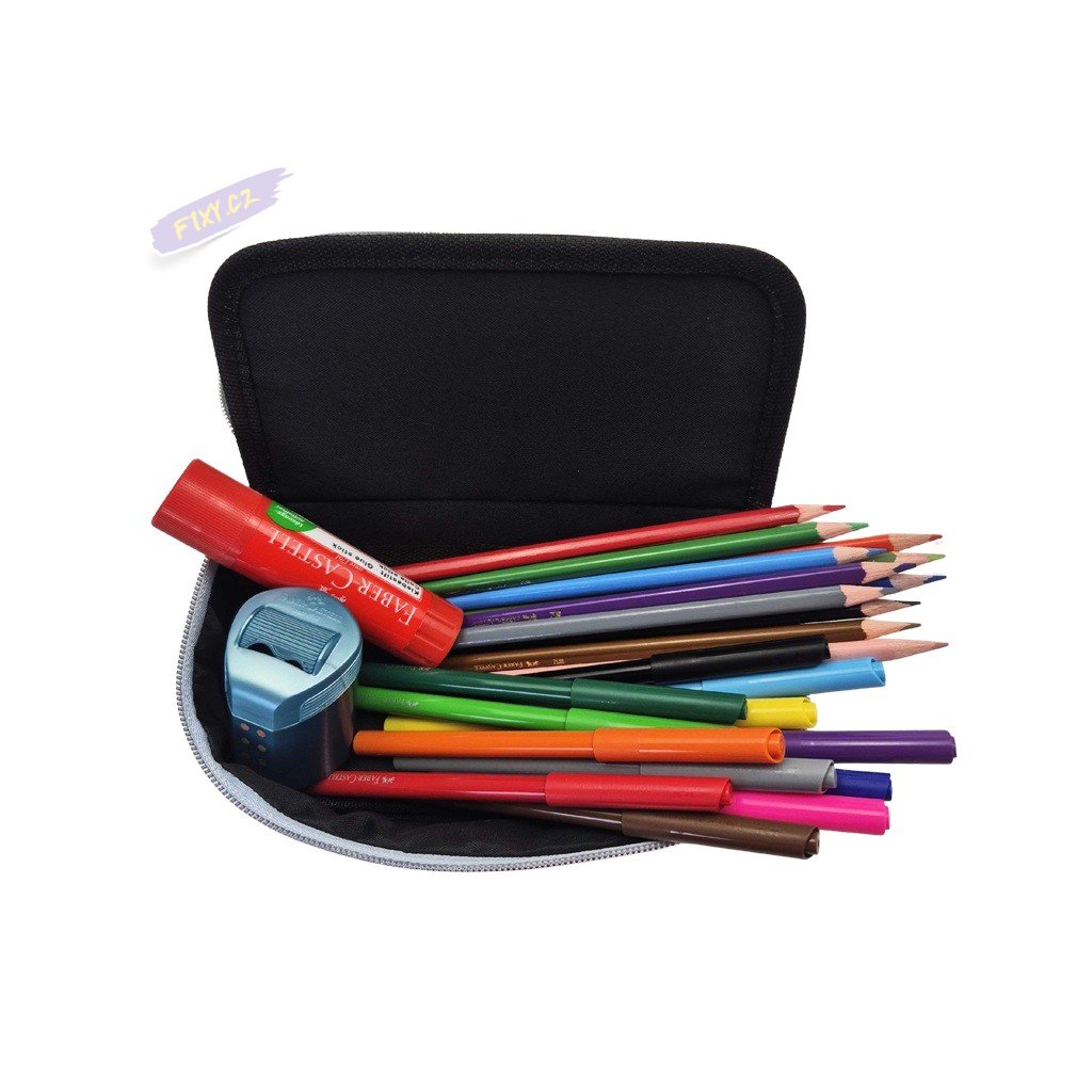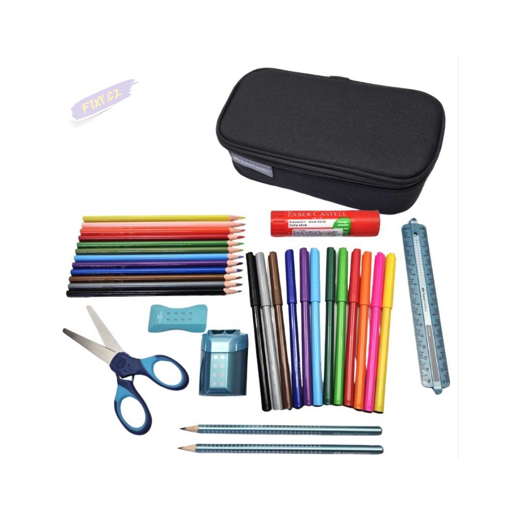 FABER-CASTELL školní sada pro kluky v penále, 24ks fix a pastelek a 8ks příslušenství
