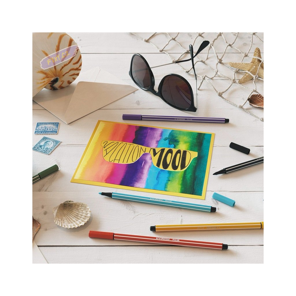 Vláknový fix STABILO Pen 68 bude vaším novým nejlepším barevným přítelem. Vodou rozmývatelná náplň na vodní bázi bez zápachu má velmi jasné a zářivé barvy. Začněte nyní vybarvovat s rozsáhlou škálou 65 barev včetně 6 neonových. Fix nabízí robustní Medium hrot (šíře stopy cca 1mm) pro rovnoměrné nanášení náplně, který lze využít pro silné linie a velké plochy. Otevřený vydrží až 24 hodin a nevyschne.