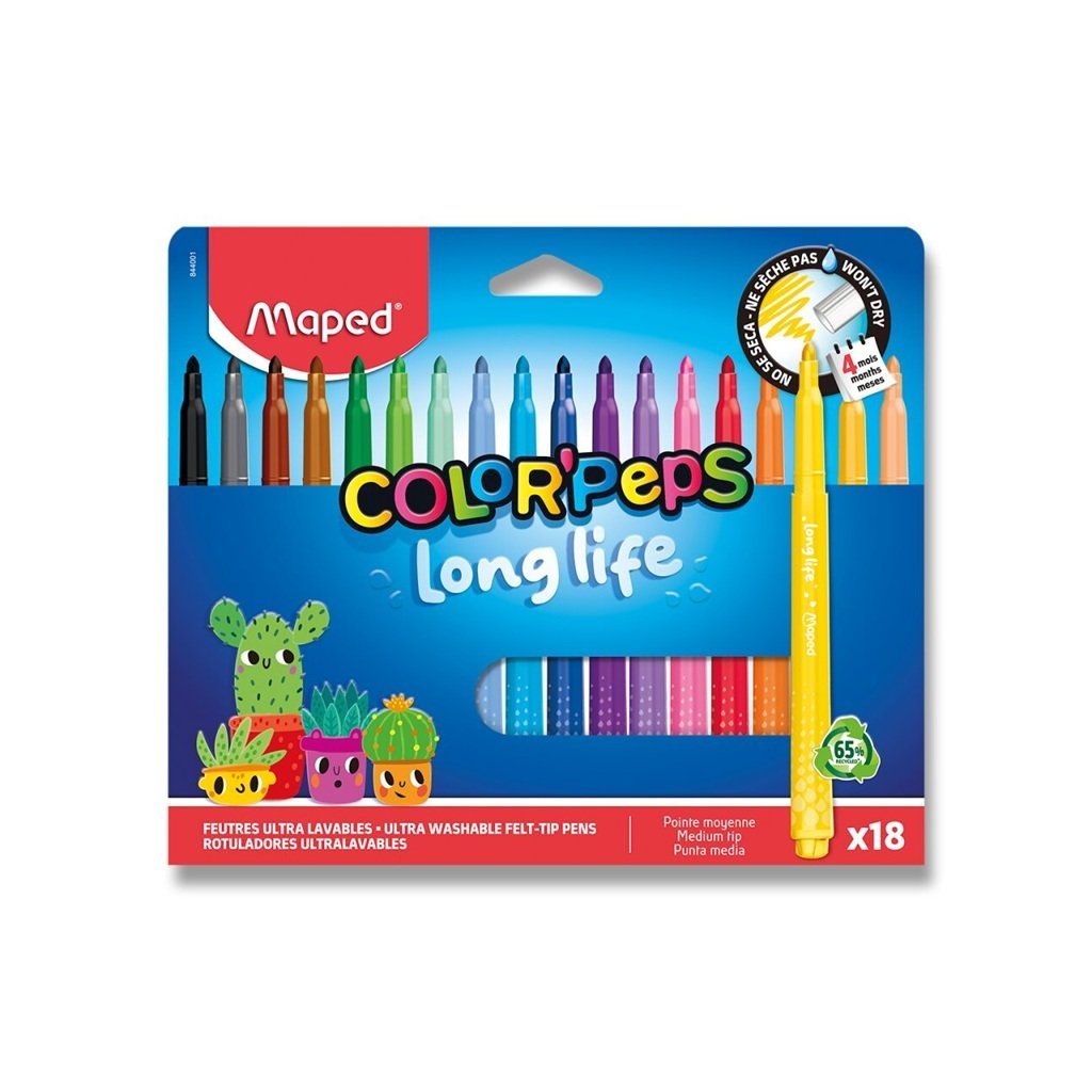 Souprava barevných fixů se snadno vypratelným a omyvatelným inkoustem. Zářivé barvy. Hrot odolný proti zatlačení či poškození, účinný uzávěr. Dlouhá životnost. Trojúhelníkový úchop pro lepší a pohodlnější držení.