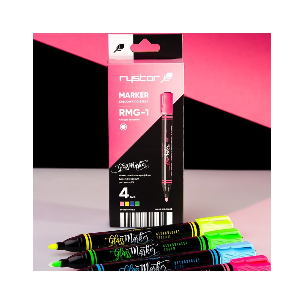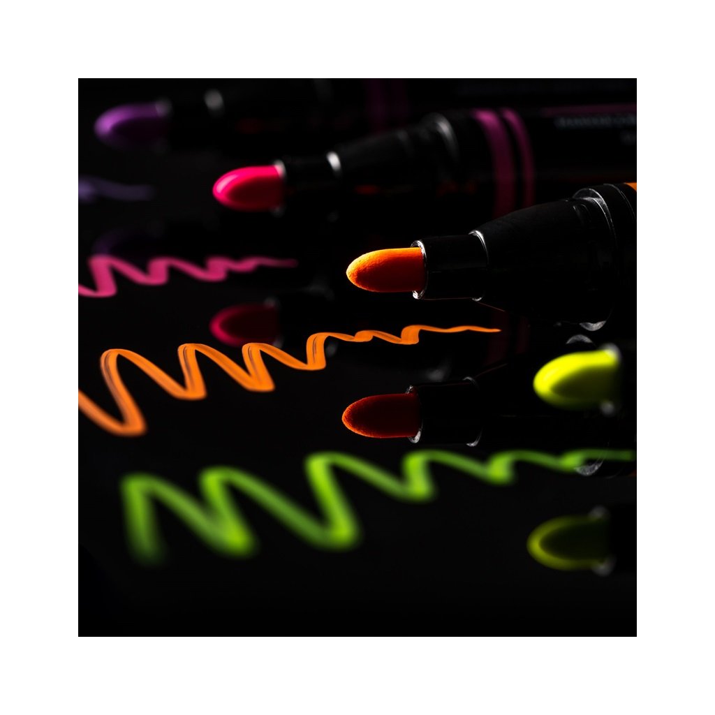 Nenechte se zmást, protože sklo je jen jedním z několika materiálů, na kterých může tekutá křída chvíli spočinout. V případě potřeby stačí suchý hadřík, aby kresba nápis zmizely beze stopy. Žluté, modré, růžové, zelené a oranžové barvy jsou k dispozici se speciálním inkoustem, který svítí pod UV lampou.