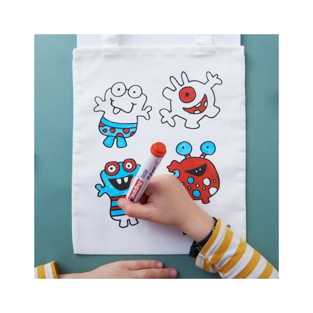 Textilní popisovač Edding 4500 se širším hrotem lze využít pro zdobení většiny světlých látek z přírodních (bavlna, len) i směsových vláken. Na předepraných látkách nabízí fix skvělou barevnou stálost. Inkoust na bázi vody má neutrální vůni, je rychleschnoucí a světlostálý. K zafixování nanesené barvy je nutné motiv přežehlit bez použití páry, pak bude váš výtvor odolný vůči praní do 60 °C. Šíře stopy: 2-3 mm.