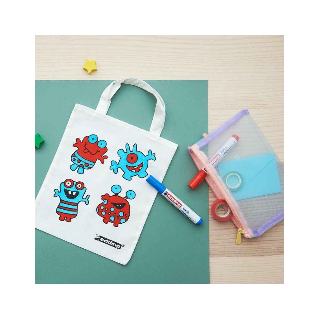 Fixy na textil EDDING 4500, 2 ks modrá a červená + taška k pokreslení