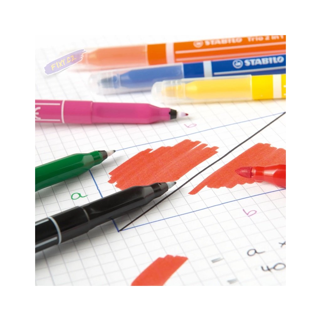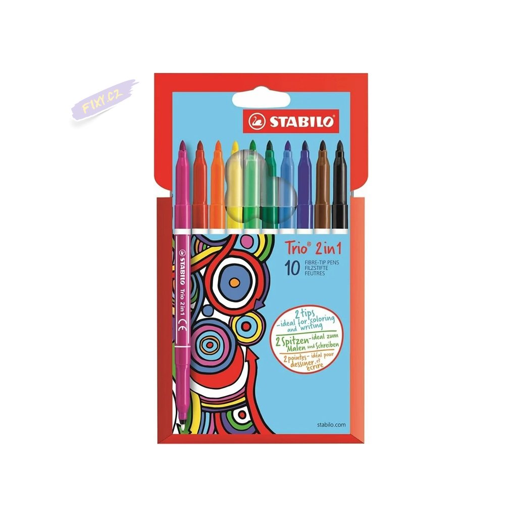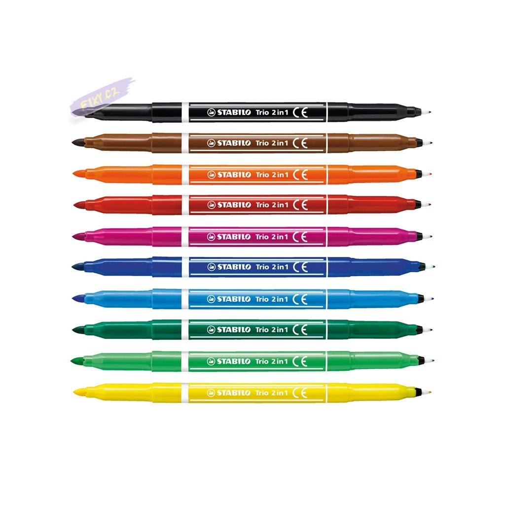 Sada vysoce kvalitních fixů STABILO s oboustranným hrotem - tenký hrot na psaní, silný hrot na kreslení. Vypratelný inkoust.