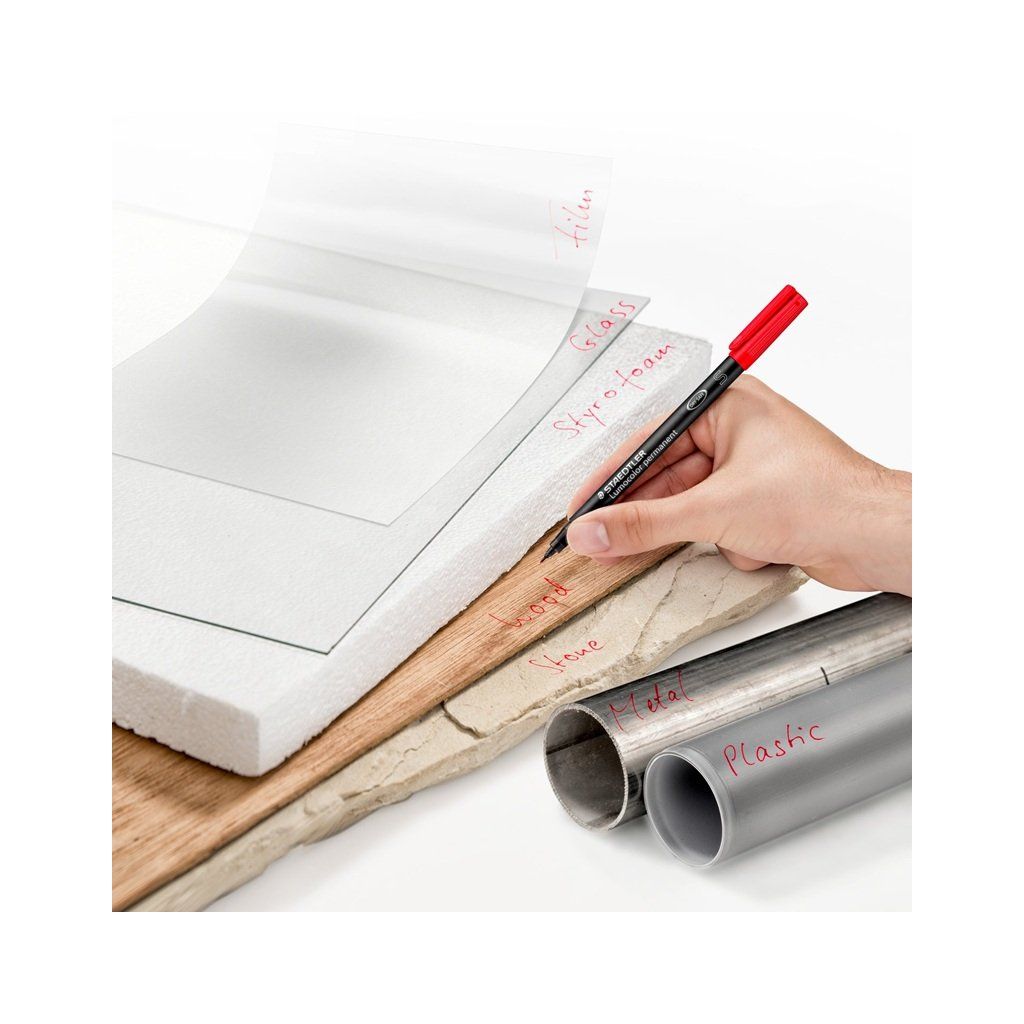 Sada univerzálních permanentních popisovačů od značky STAEDTLER pro většinu povrchů. Inkoust je světlostálý, voděodolný a odolný proti rozmazání. Nevysychající, plnitelný, rychleschnoucí, vhodný i pro leváky.