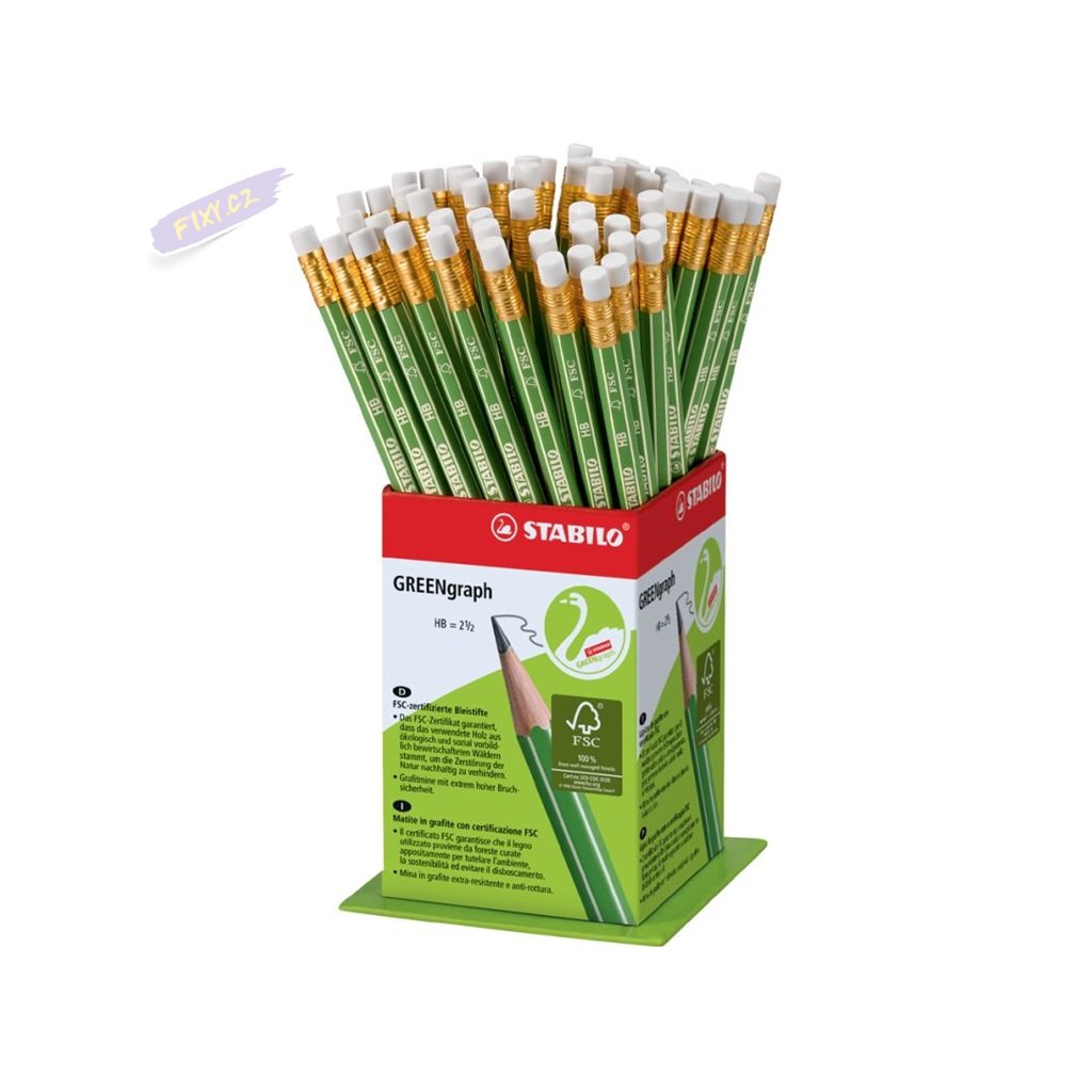Grafitové tužky STABILO GREENgraph s gumou, 60ks ve stojánku
