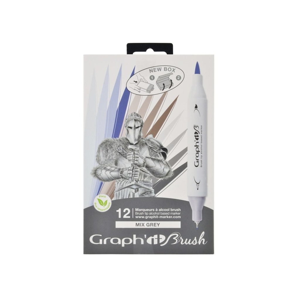 Lihové fixy GRAPH'IT oboustranné Brush & Chisel, 12 ks Mix Greys