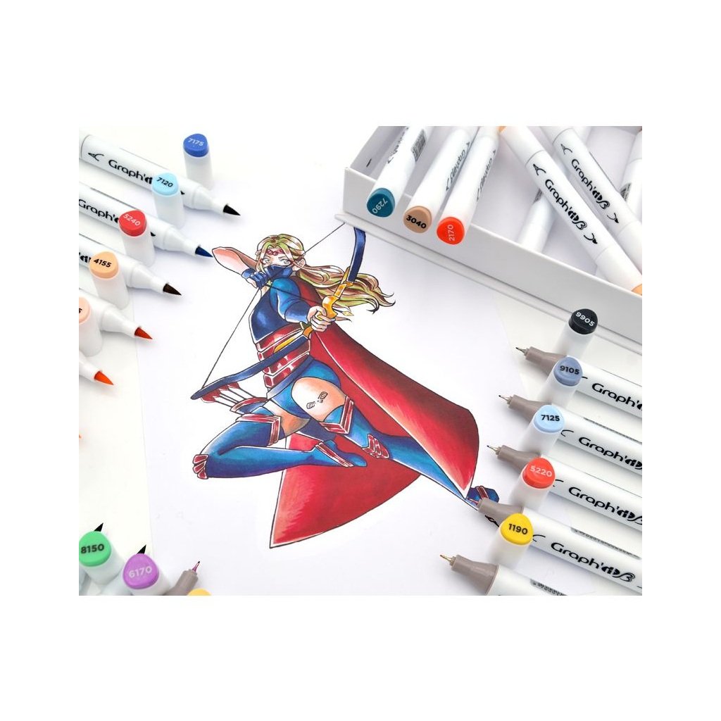 Lihové fixy GRAPH'IT oboustranné Brush & Chisel, 24 ks Comics