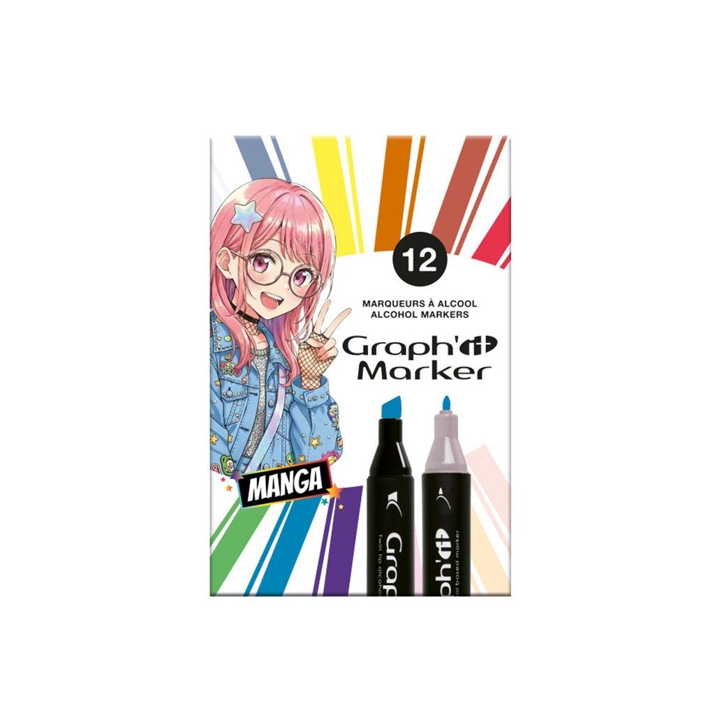Lihové fixy GRAPH'IT oboustranné Fine & Chisel, 12 ks Manga