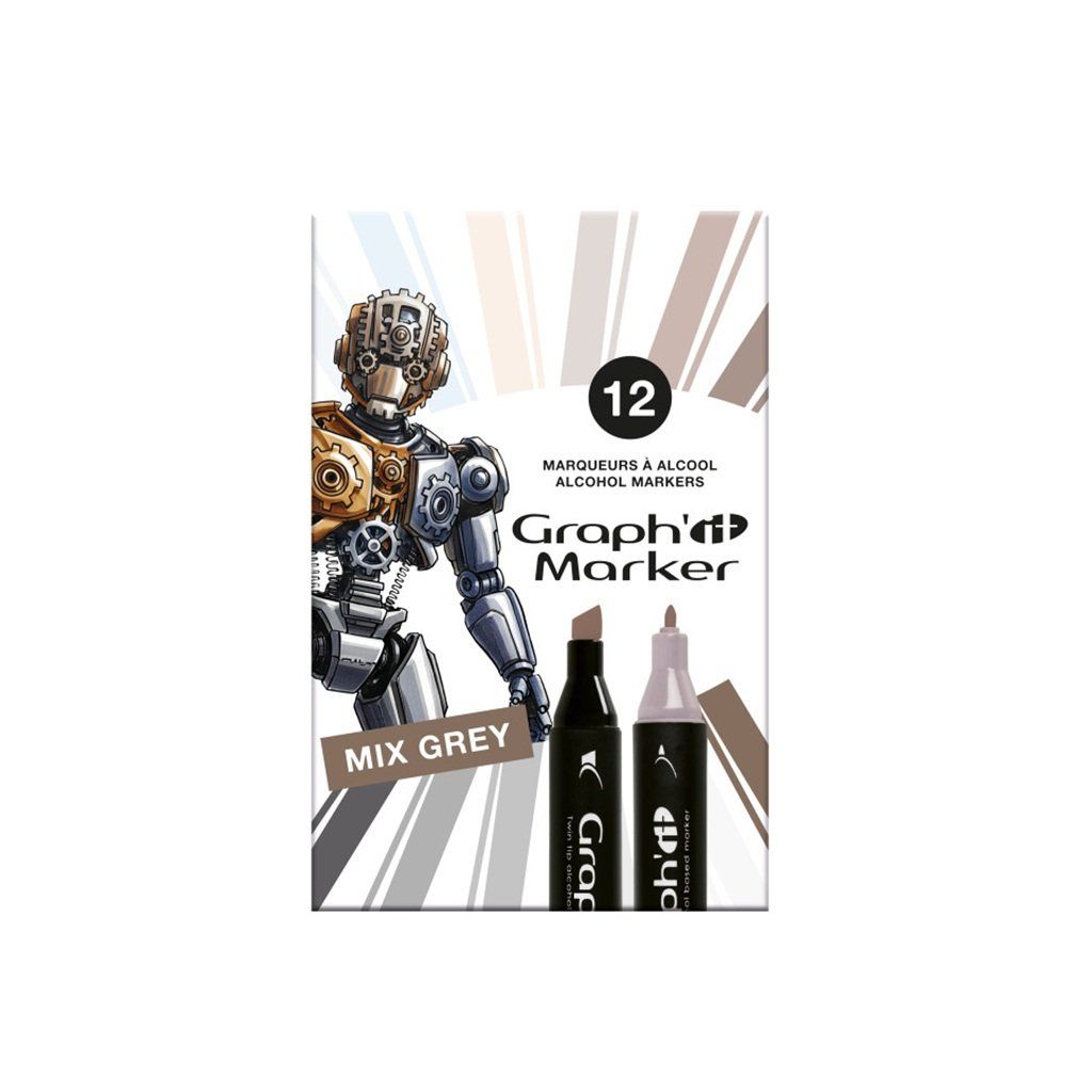 Lihové fixy GRAPH'IT oboustranné Fine & Chisel, 12 ks Mix Greys