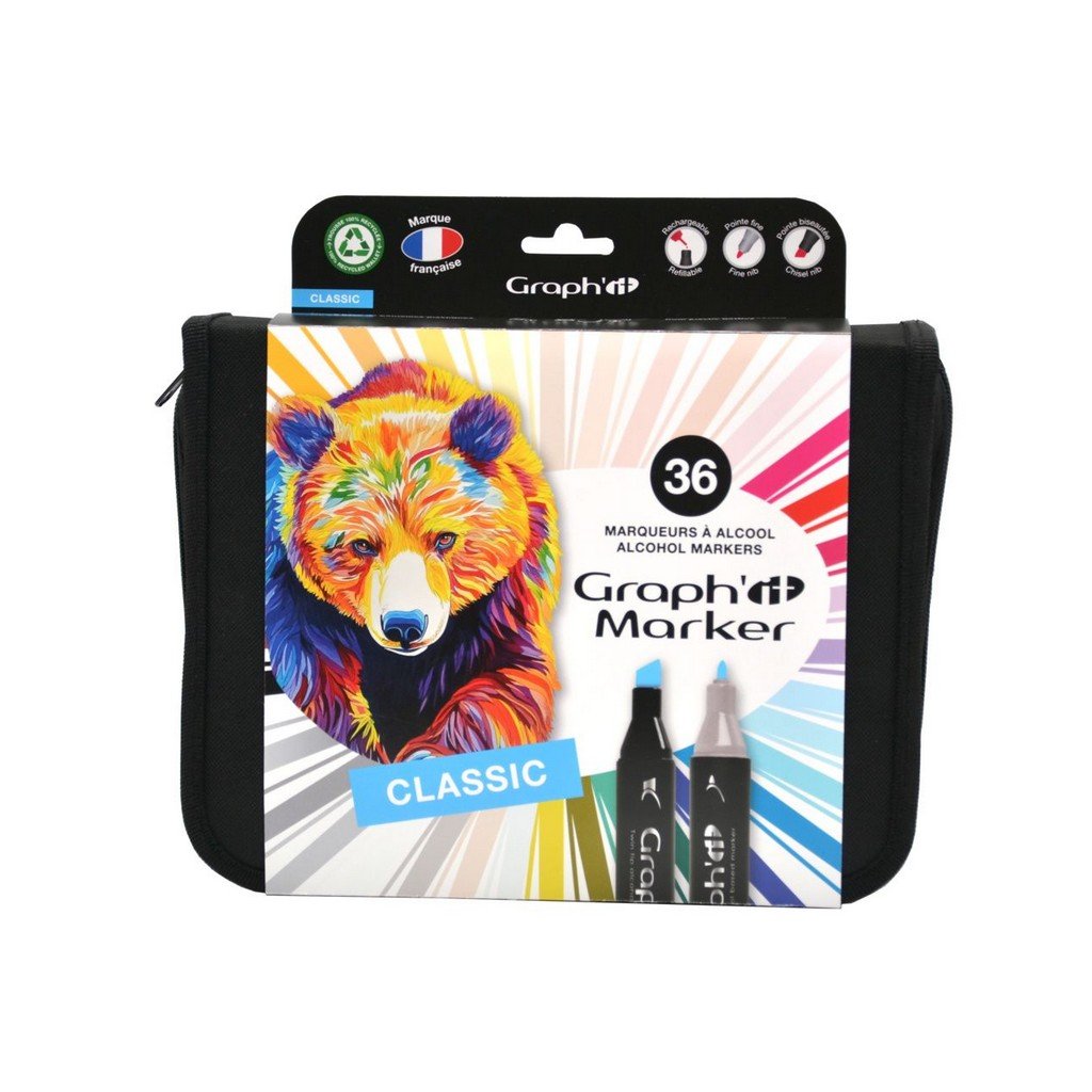 Lihové fixy GRAPH'IT oboustranné Fine & Chisel, 36 ks Basic Colors v penále